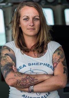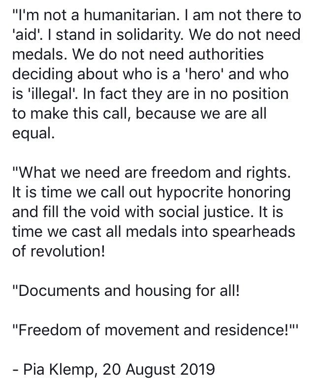 Pia Klemp, the German ship captain who rescued migrants in the Mediterranean, as she refuses a medal from the mayor of Paris.
